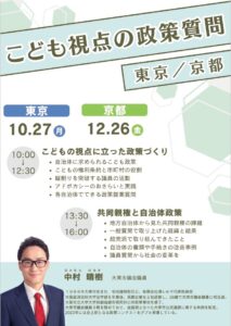 来週月曜に「共同親権&こどもの視点の政策質問」という勉強会が開催され講師を務めます。